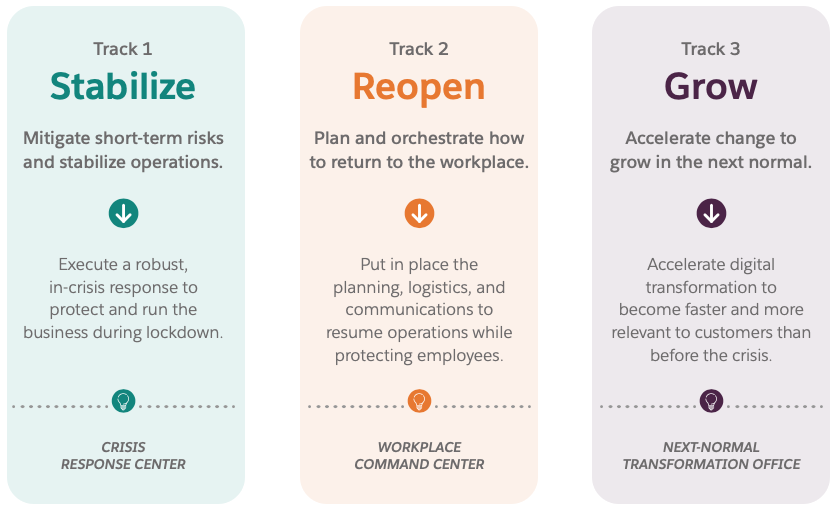 Different businesses, industries, and geographies will operate at different paces. Even within a company, it is possible for a department or region to be within its own track. Some industries could already be on their way to growth.